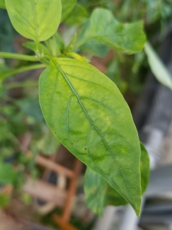 ピーマンは、鉄欠乏の症状が現れると、葉の緑色が薄くなります。