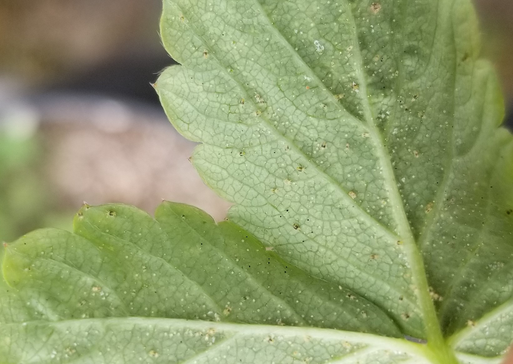 いちご|葉や茎が茶色に|チャノホコリダニ