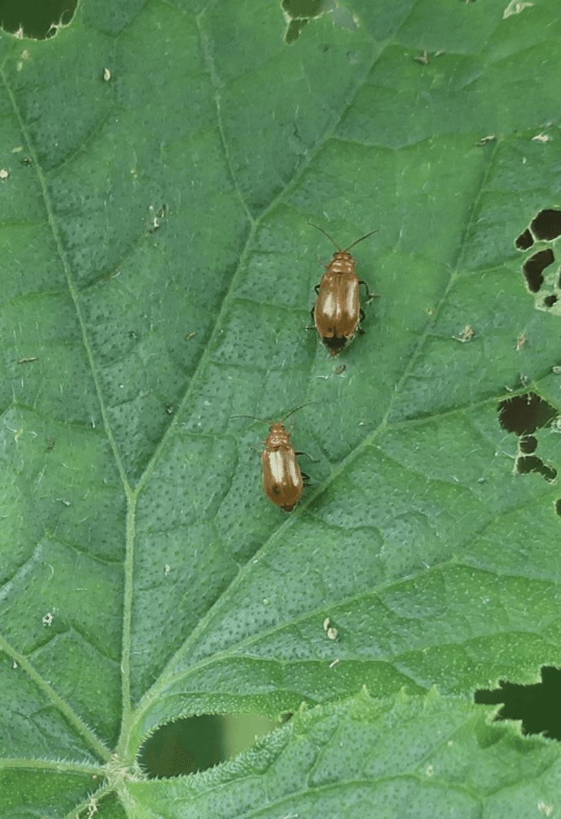 ウリハムシの成長は葉っぱを、幼虫は根っこを食べて生きています。春から初秋にかけて発生することが多いです。