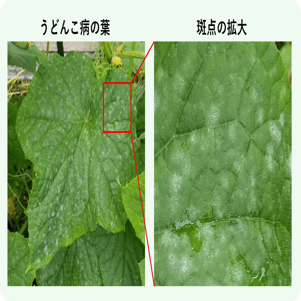 家庭菜園できゅうりを栽培していると、梅雨の時期に葉に粉っぽい白いカビが生えることがあります。これは”うどんこ病”、放っておくと葉っぱがカビで覆われ、光合成ができなくなってしまいます。
