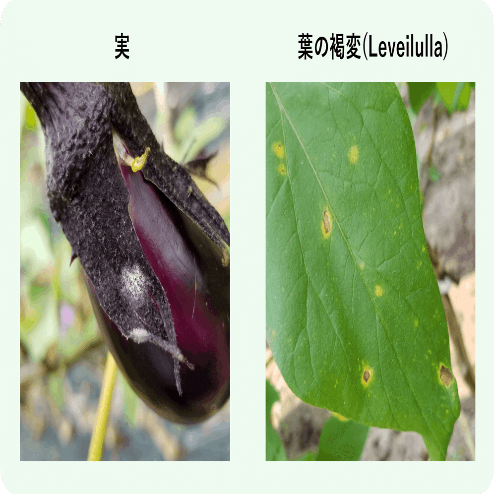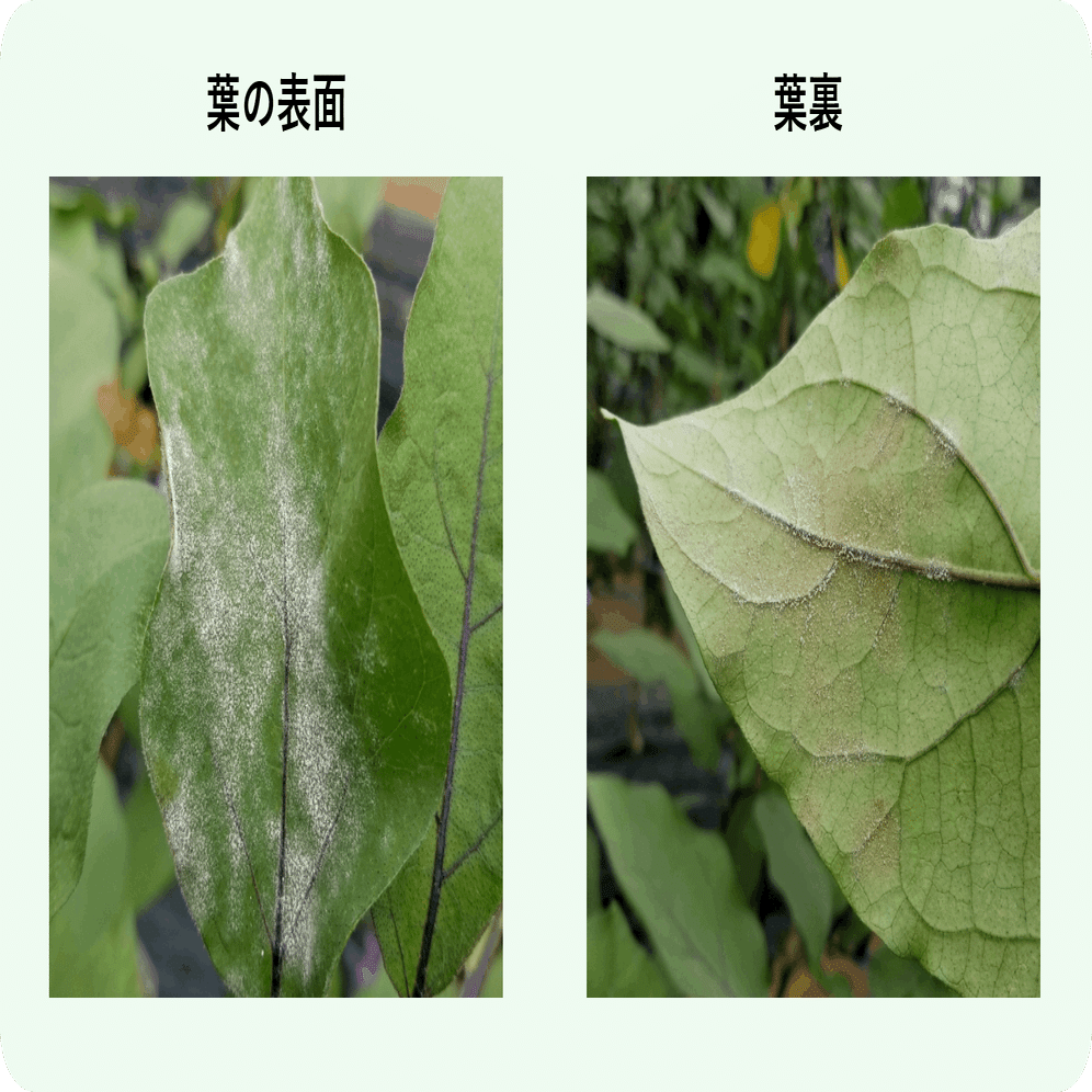 うどんこ病の菌は生きたナスの上でしか生きられず、土壌からは伝染しません。それでも比較的発生しやすいのは、タネや苗に既に伝染しているなどの原因が考えられます。