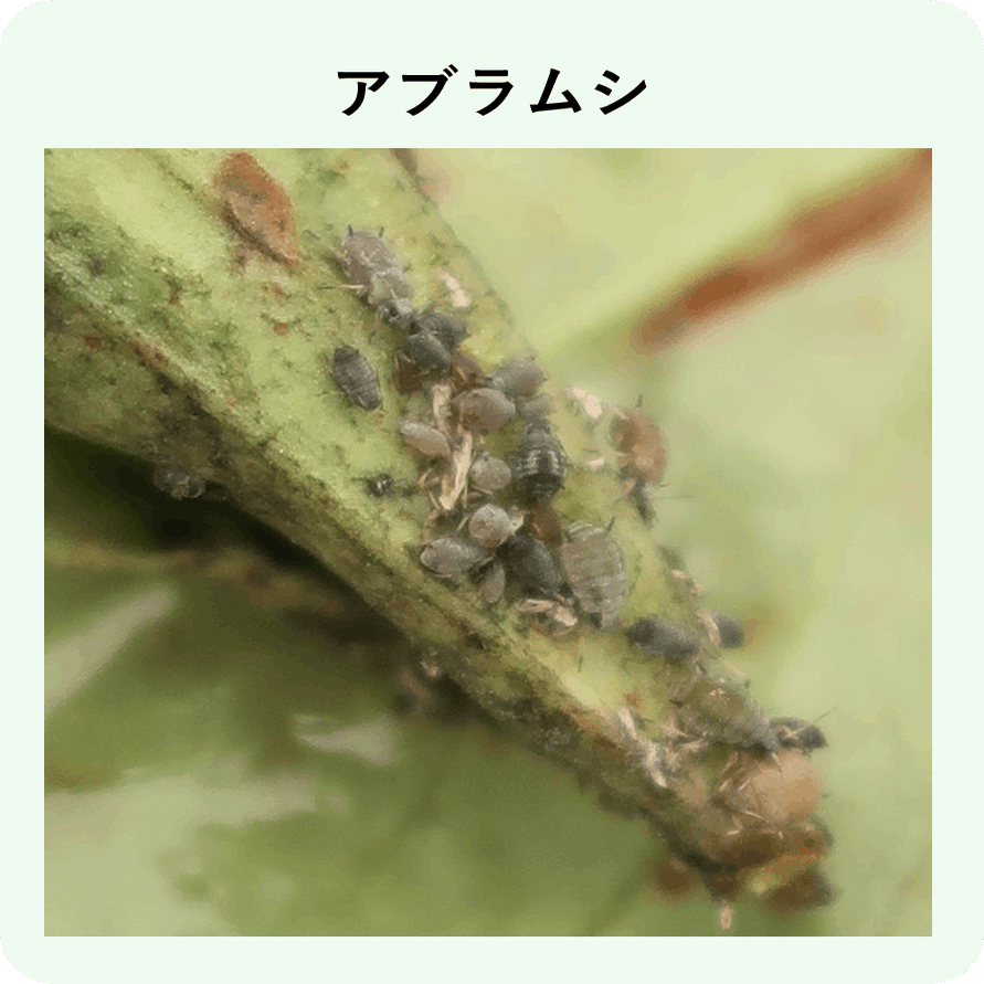 周辺の雑草に寄生していることが多いので、アブラムシが付きやすいような雑草は刈り取っておくことをお勧めします。