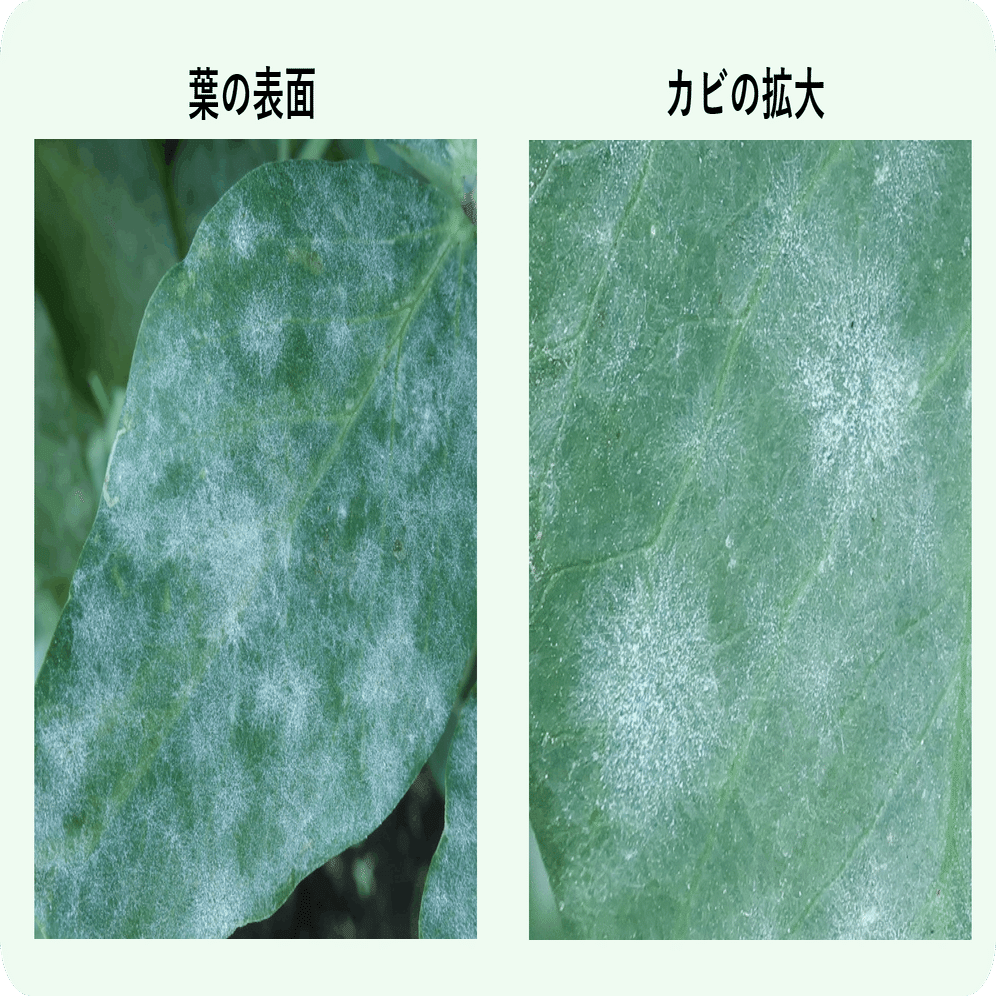 葉のカビから胞子が飛んで広がってしまうので、カビの生えた葉は除去しましょう。