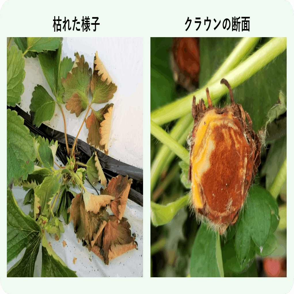 土壌に菌が残るほか、いちごの体内にも長く生存します。一度感染するといつ発症するか分からず、まるで時限爆弾のようです。