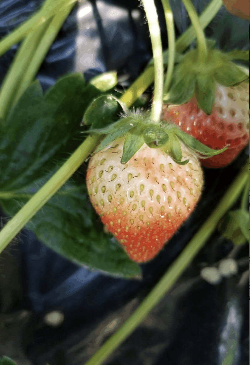 被害を受けたいちごの果実は、種の周辺が褐色になるのが特徴です。そして、アザミウマの食害を受けた果実は、見た目が悪くだけでなく、味も損なわれ、商品価値がガクンと落ちてしまいます。